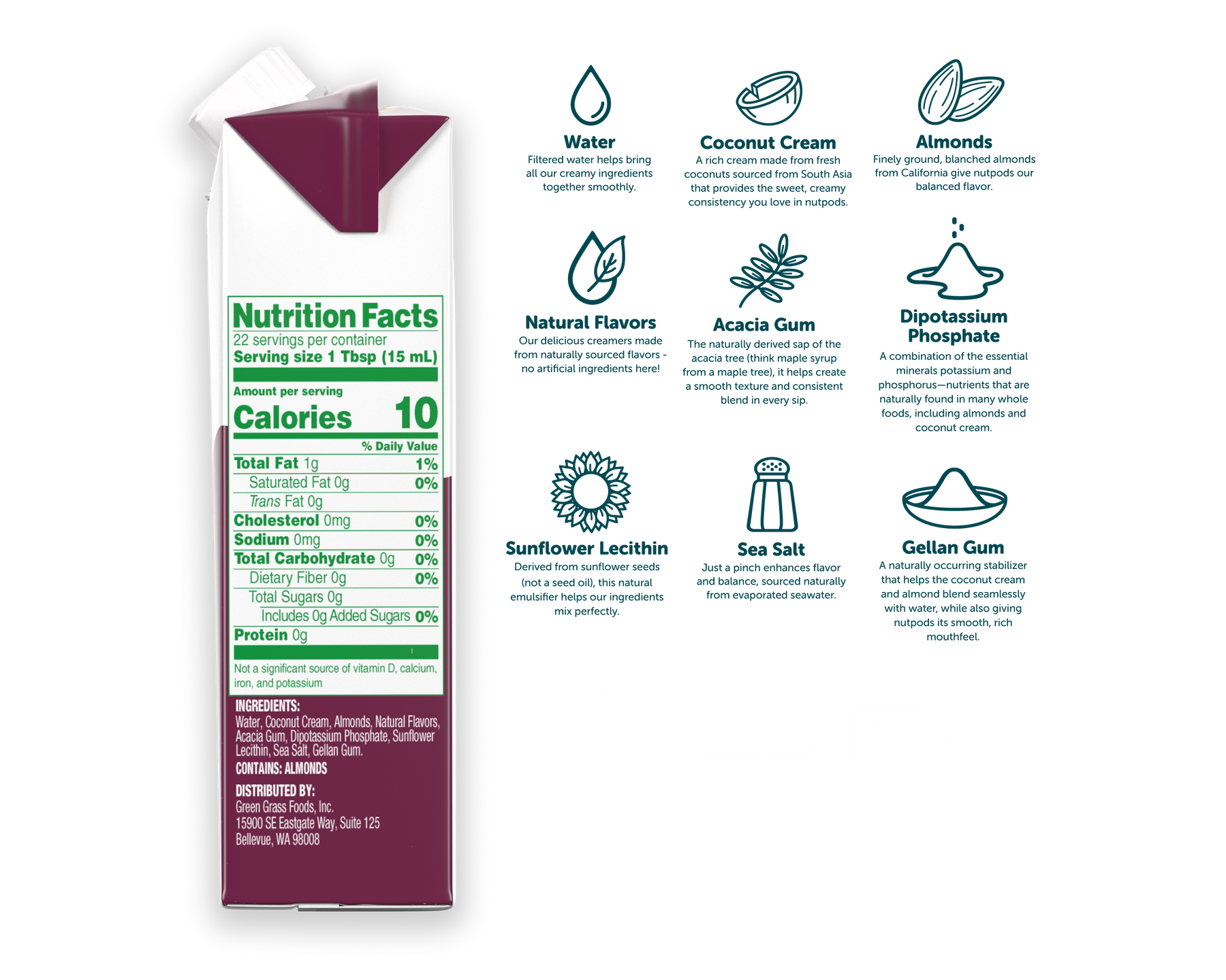 Naturally flavored. Our dairy-free coffee creamer is unsweetened and has 0g of sugar per serving. Enjoy while following any lifestyles including keto diets, paleo diets, and WeightWatchers (0 Points per serving).