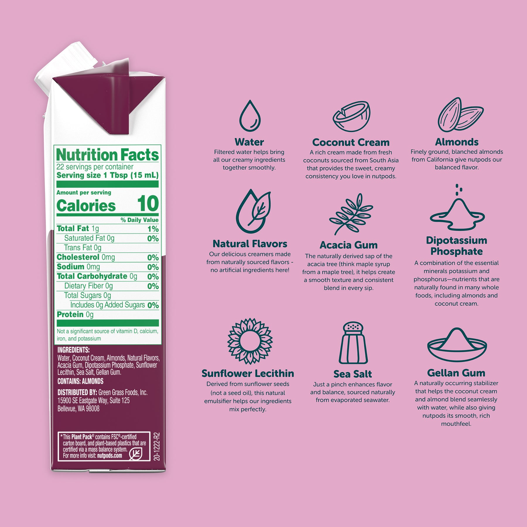Naturally flavored. Our dairy-free coffee creamer is unsweetened and has 0g of sugar per serving. Enjoy while following any lifestyles including keto diets, paleo diets, and WeightWatchers (0 Points per serving).