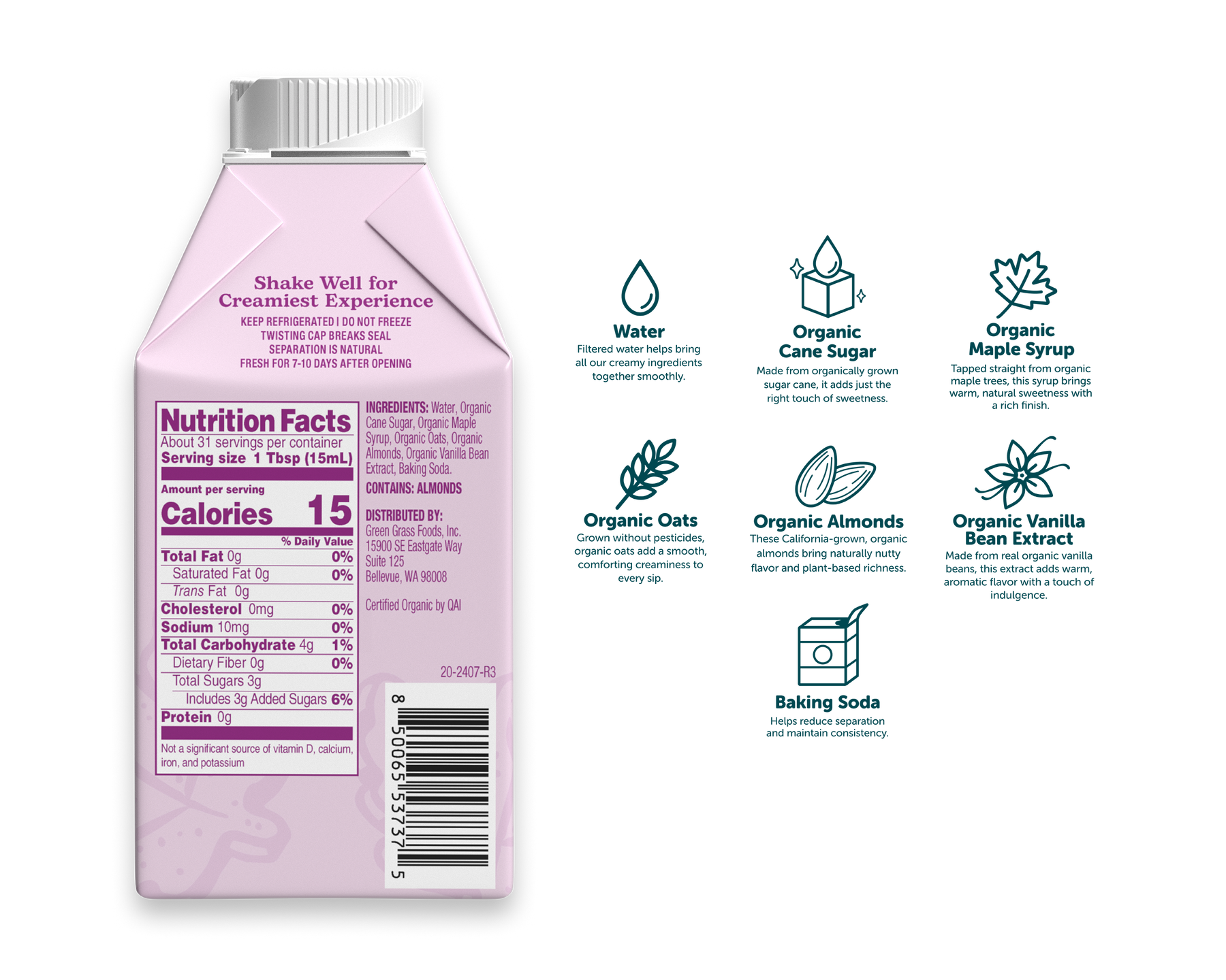 Plant based creamer made from organic oats and only real ingredients.