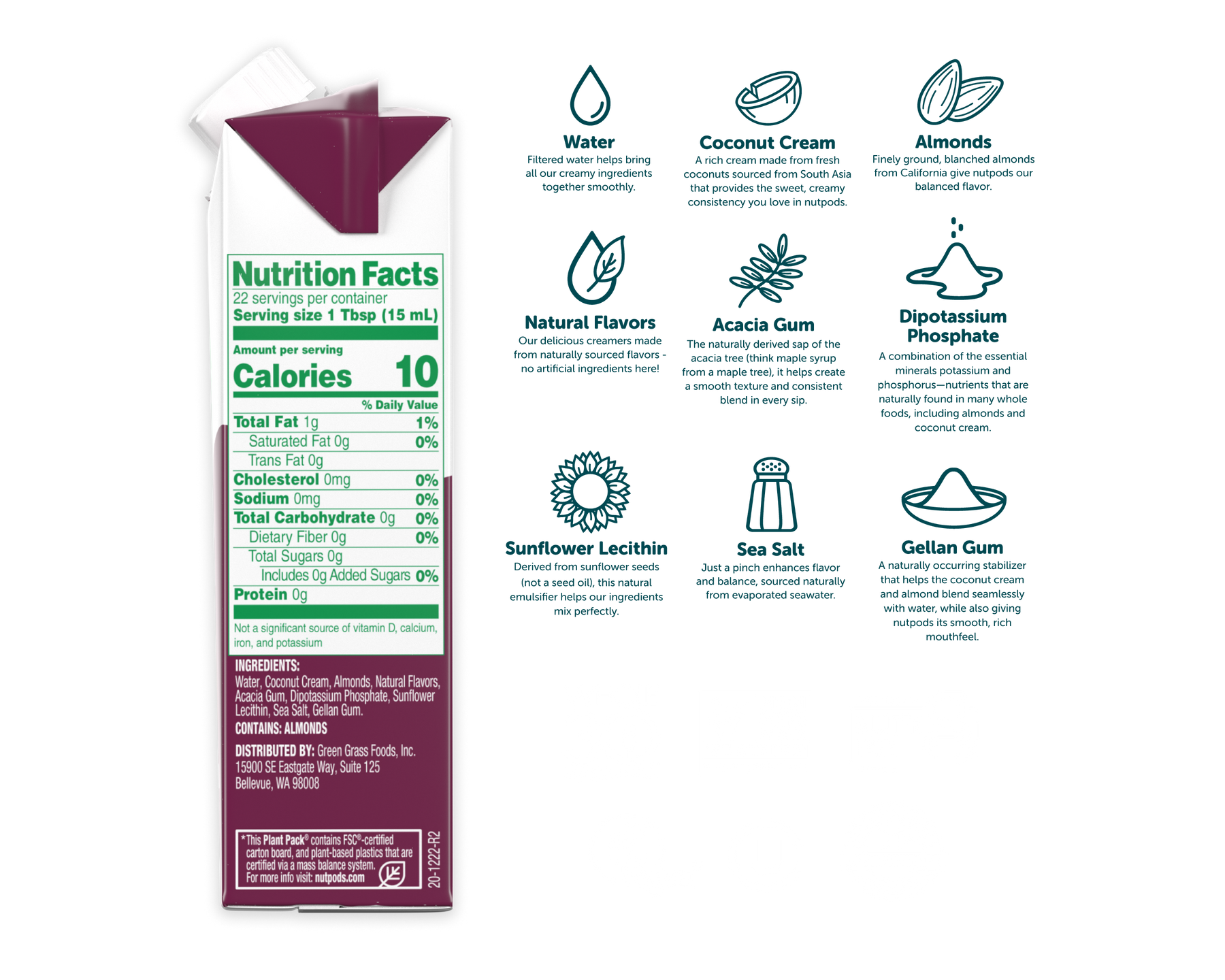 Naturally flavored. Our dairy-free coffee creamer is unsweetened and has 0g of sugar per serving. Enjoy while following any lifestyles including keto diets, paleo diets, and WeightWatchers (0 Points per serving).